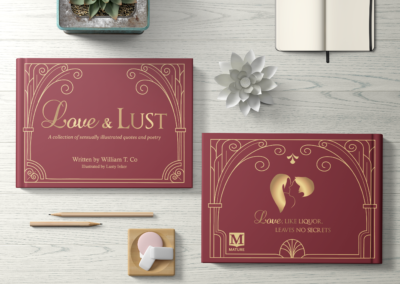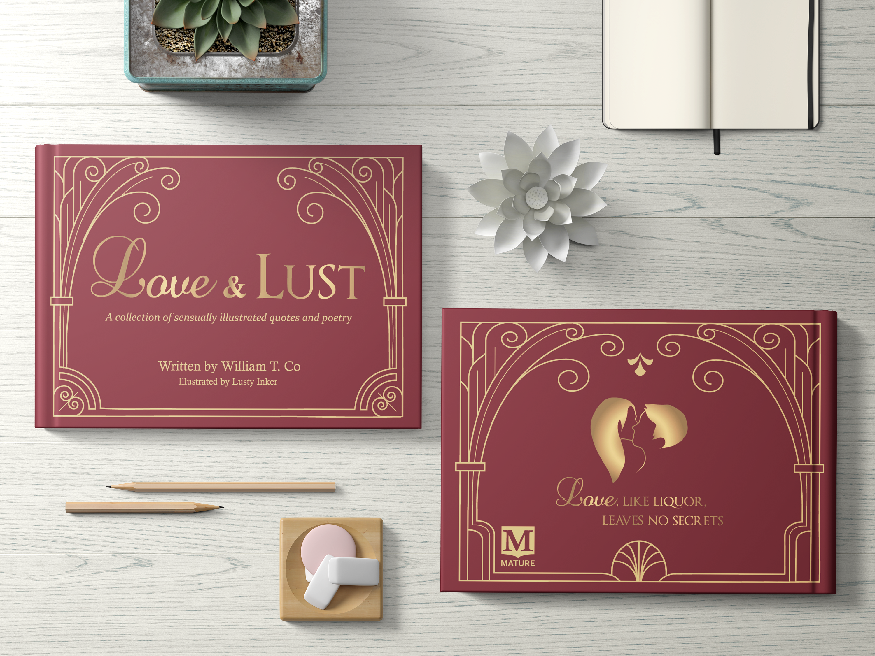 The book contains select love quotes and poetry, paired with a sensually illustrated line art.